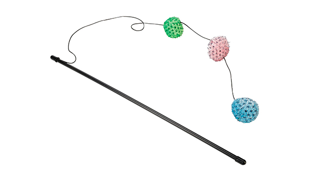 As canas com pena ou bolas são uma boa opção de brinquedos para gatos, dado que imitam a presa na perfeição, esvoaçando no ar ou no chão. Os patudos vão saltar e perseguir a cana, sendo uma boa forma de reforçar a relação dos tutores com os seus felinos.