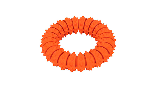 É o caso dos brinquedos em latex, sticks ou este anel mordedor, que o cão poderá morder para se divertir.