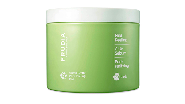 Se preferir uma alternativa à textura em creme ou gel, experimente estes discos de algodão esfoliantes de uva verde da marca Frudia.