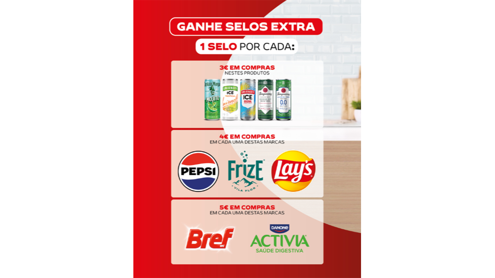 4.1.3 Durante toda a vigência da Campanha, por cada 4€ (quatro euros) em compras associadas ao Cartão Continente, efetivamente pagas, numa das Lojas supra indicadas, em artigos das marcas: “Lays”, “Pepsi” e “Frize”, selecionadaos exclusivamente para a Campanha, e que se encontram discriminadaos no Anexo II do presente Regulamento.