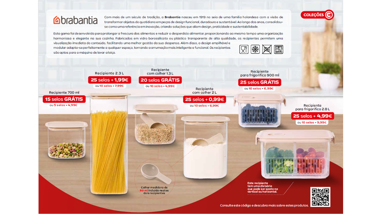 11.2 Nas Lojas, com exceção do Continente Online, existem expositores próprios, devidamente identificados com a Campanha “Coleções Continente Recipientes de organização Brabantia” e com as referências disponíveis.