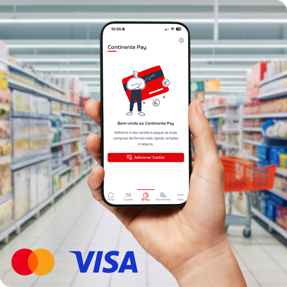 Em loja, basta clicar no botão "Usar Cartão" na sua App e referir que pretende pagar com o Continente Pay.