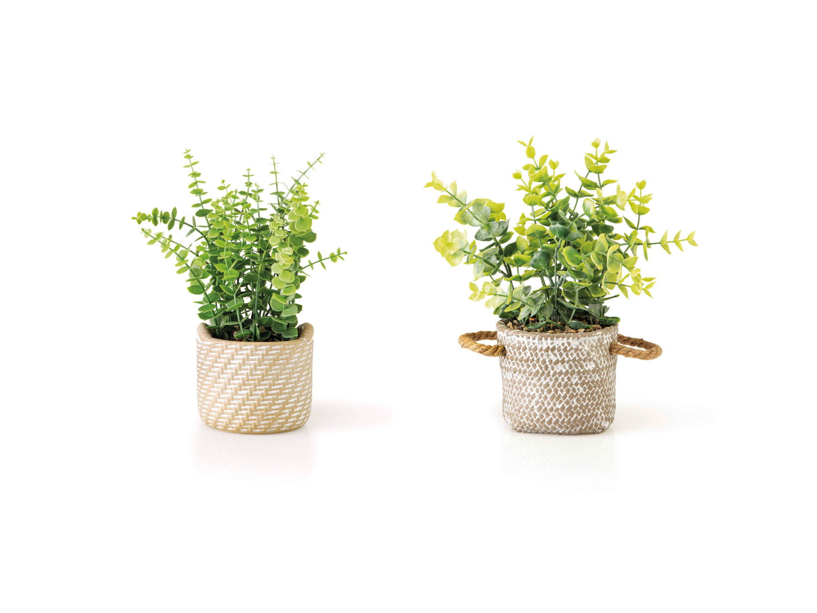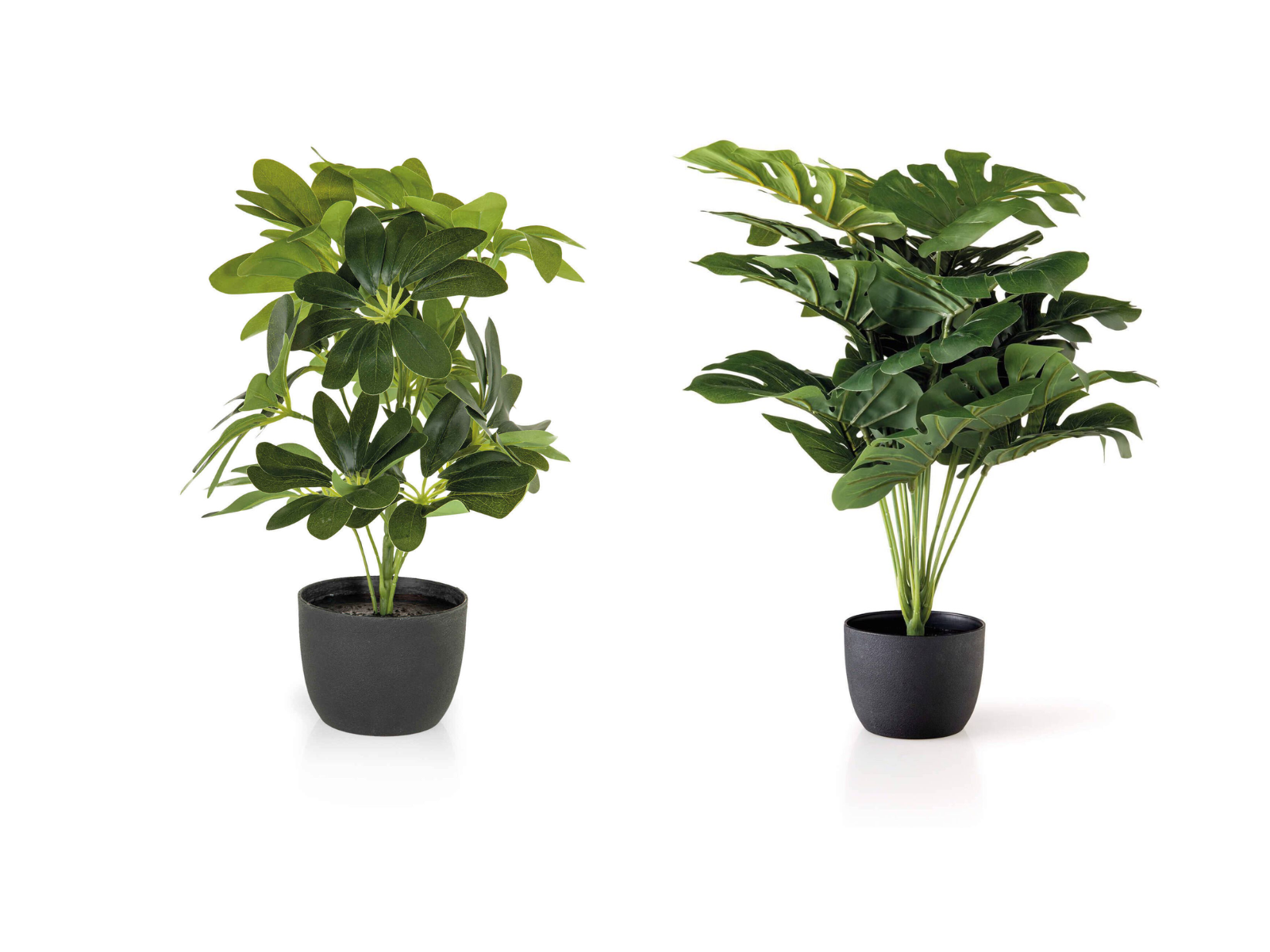 Estas duas opções de plantas artificiais com vaso da marca KASA são excelentes exemplos. A primeira planta tem 40cm de altura e a segunda planta tem 49cm.
