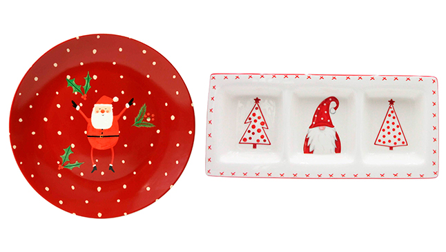 Para contrastar com a simplicidade do centro de mesa, aposte em loiça com desenhos típicos da época, como pratos com o Pai Natal. Para servir entradas ou aperitivos durante a consoada, escolha um prato com divisórias ou uma travessa retangular. Já para servir os doces de Natal tradicionais, prefira pratos de sobremesa temáticos.