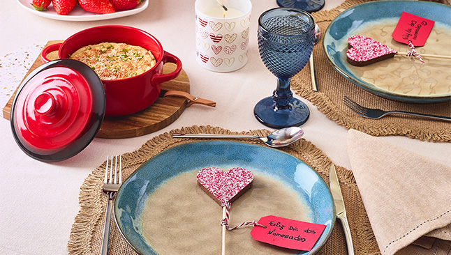 Para terminar, acrescente pequenos cartões com mensagens de amor, ou até mesmo fotografias juntos, para criar uma mesa mais emotiva. Já para o pequeno-almoço na cama, tal como o dia o pede, sirva a bebida quente preferida da sua cara-metade numa caneca com um desenho romântico ou opte por canecas iguais para os dois, uma forma de brindar à vossa a cumplicidade.