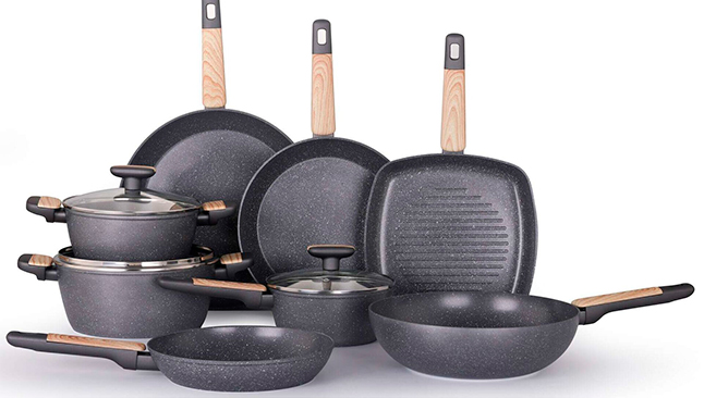 A gama Ceramic Stone da KASA inclui frigideiras, caçarolas, grelhadores, entre outras opções, com um revestimento cerâmico antiaderente.