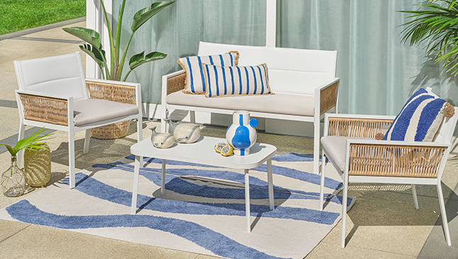 Pode ir mais longe e complementar a área de estar com cadeiras em diferentes padrões, baloiços e redes. Se tiver um jardim mais espaçoso ou piscina, as espreguiçadeiras serão ótimas aliadas para os momentos de bronzear e de relaxar.