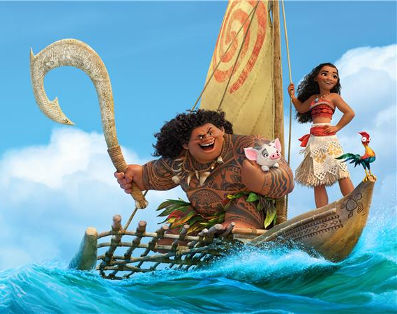 Vaiana e o semideus Maui partem numa viagem para atravessar o oceano.