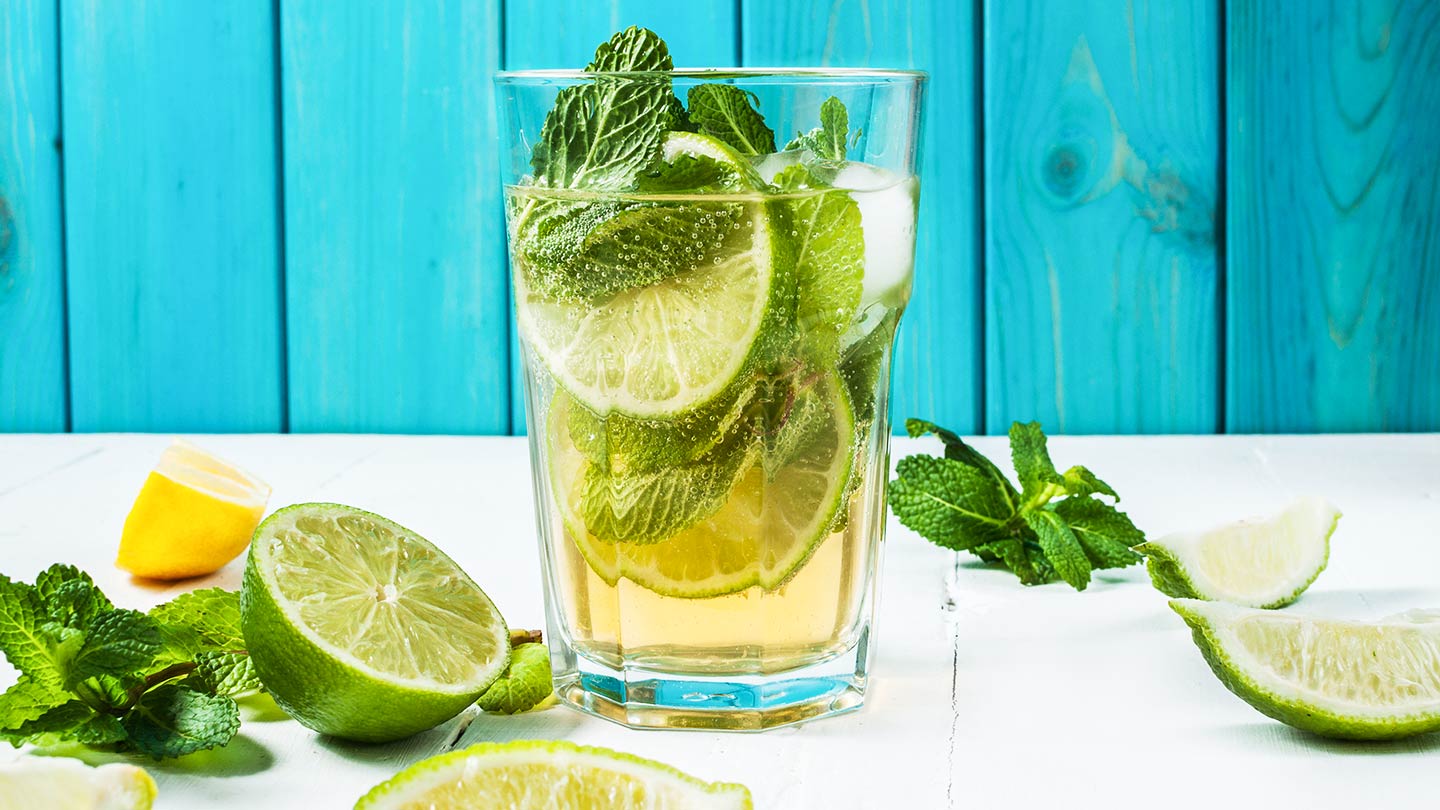 Por fim, decore com uma rodela de lima e uma folha de hortelã.