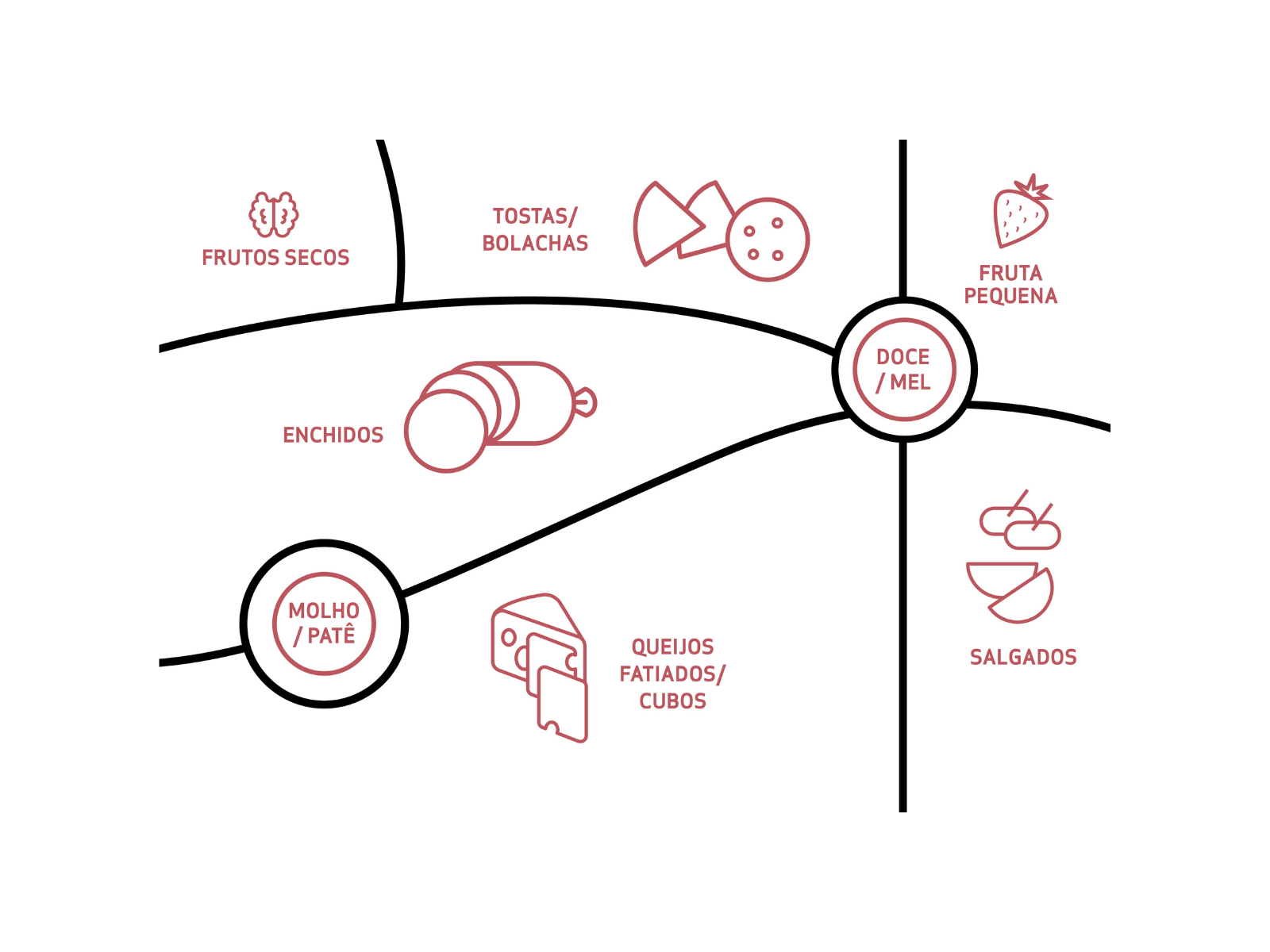 - Intensidade de sabor, dos queijos mais suaves para os mais intensos.