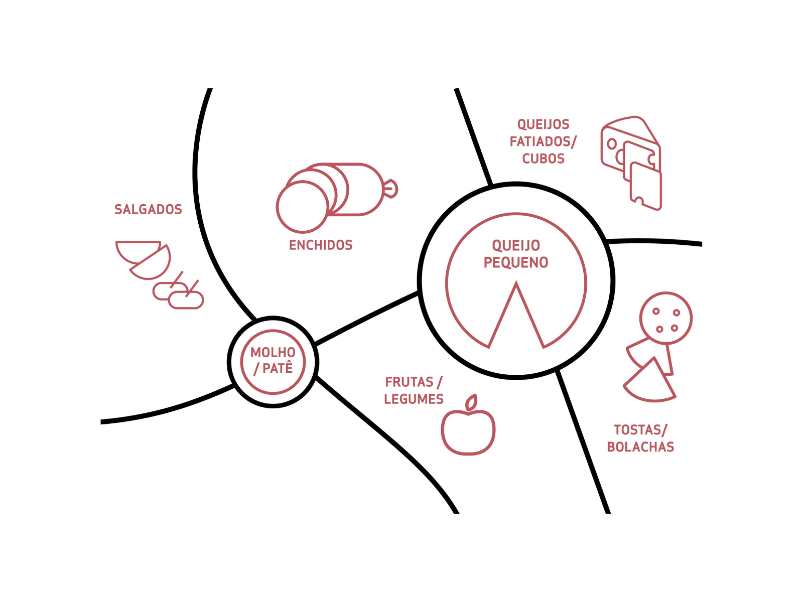 - Queijo Camembert ou Serpa: corte em fatias triangulares generosas.
