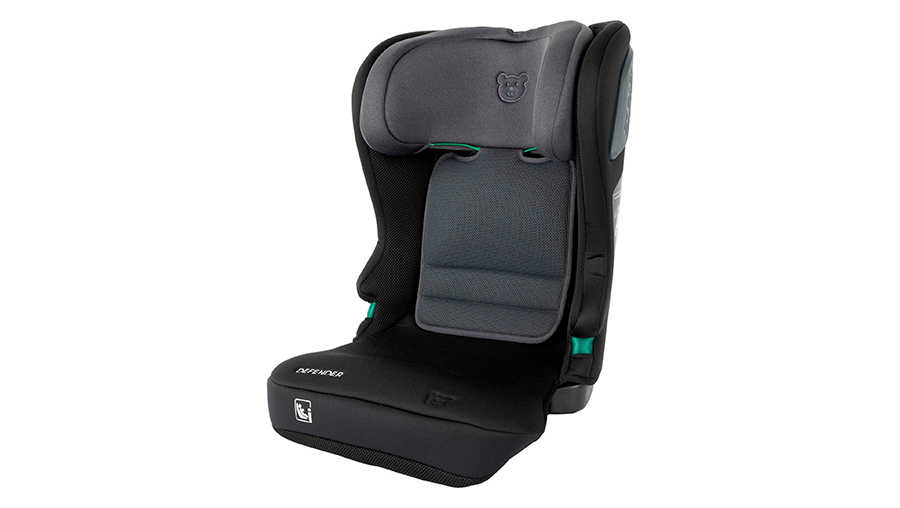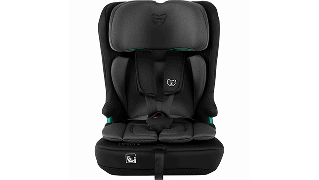 Possui apoio de cabeça ajustável em altura, proteção lateral e arneses de segurança integrados de 5 pontos. A capa é removível e lavável.