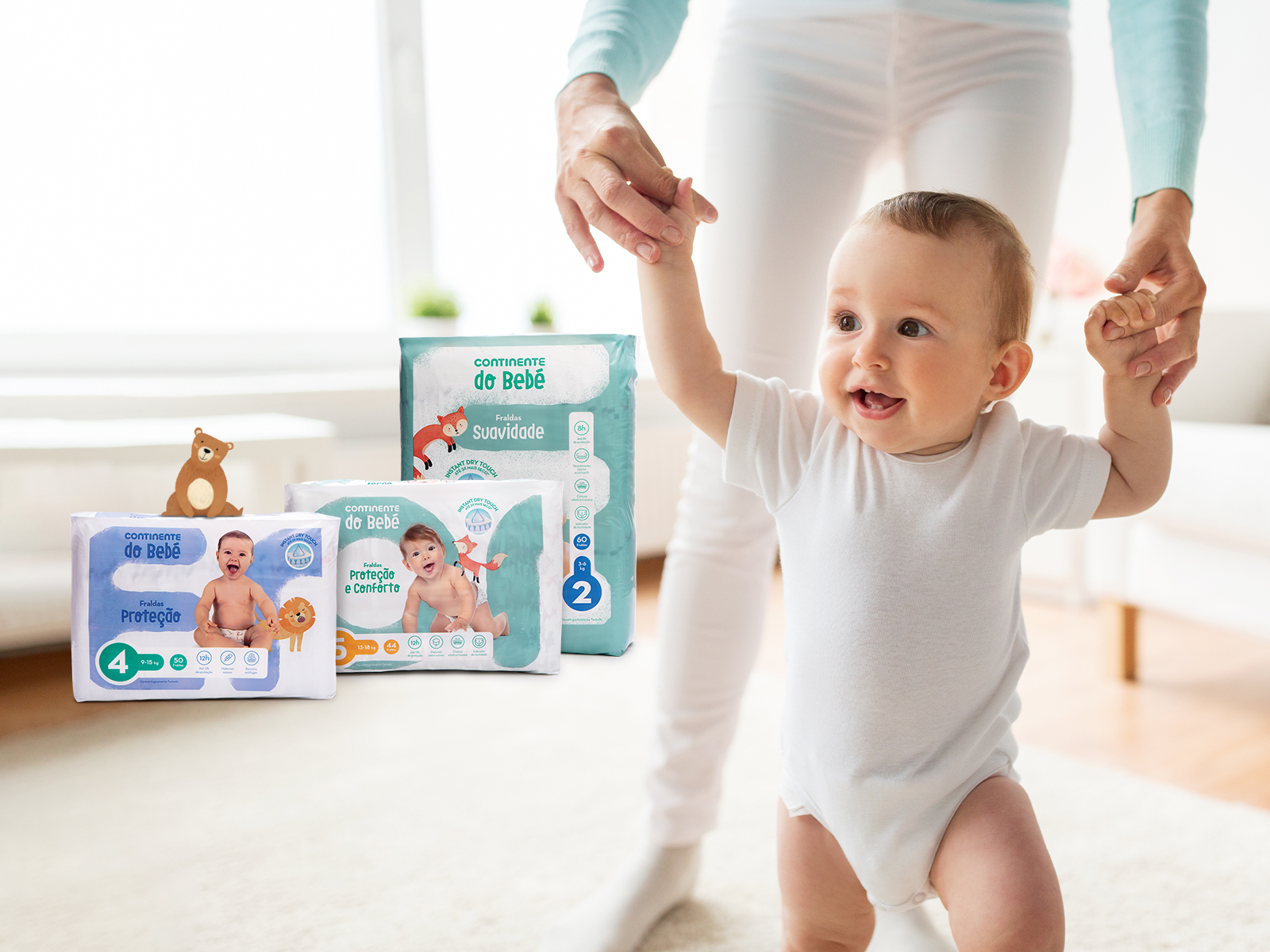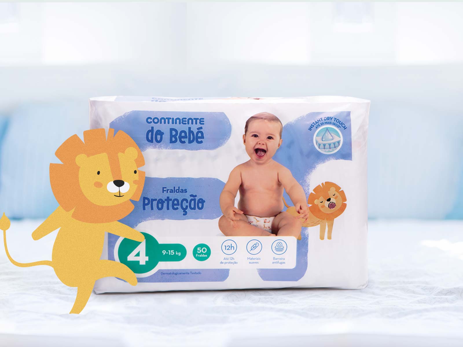 A gama de fraldas Proteção e Conforto Continente do Bebé foi especialmente desenvolvida para garantir até 12 horas de proteção com a máxima liberdade de movimentos.