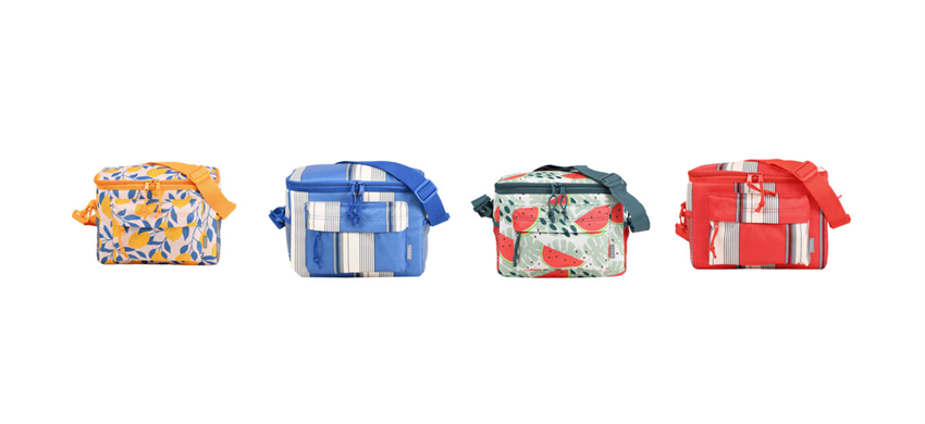 O seu interior concebido com material isotérmico permite manter os alimentos frescos durante algumas horas. Estão disponíveis em 4 padrões divertidos e que gritam "verão".