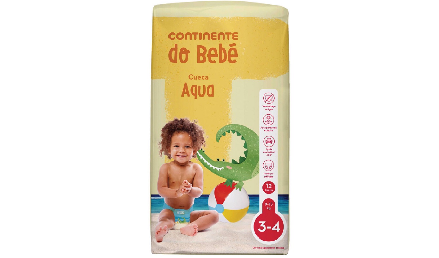 As Cuecas Aqua Continente do Bebé são ideais para os dias de praia e de piscina, uma vez que não incham na água, têm um ajuste confortável 360º e proteção antifugas. Estão disponíveis em dois tamanhos, para crianças entre os 9 e os 15kg e entre os 12 e 17kg. Dependendo do tempo que passar na praia, leve entre 2 a 4 fraldas de banho para ter de sobra quando for preciso trocar. Lembre-se também de levar fraldas normais para quando tiver de vestir o bebé para ir embora, ou mesmo para dormir a sesta.