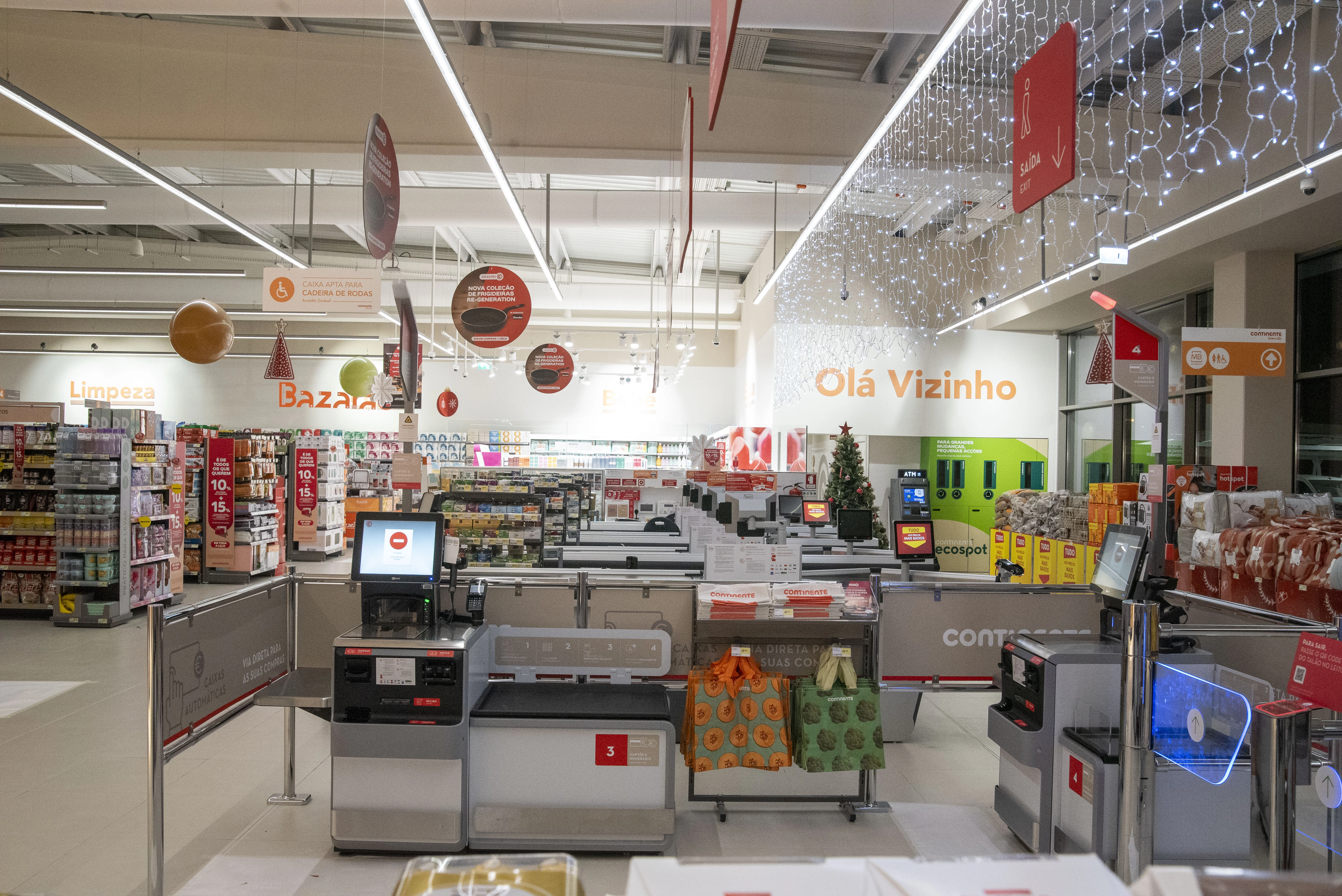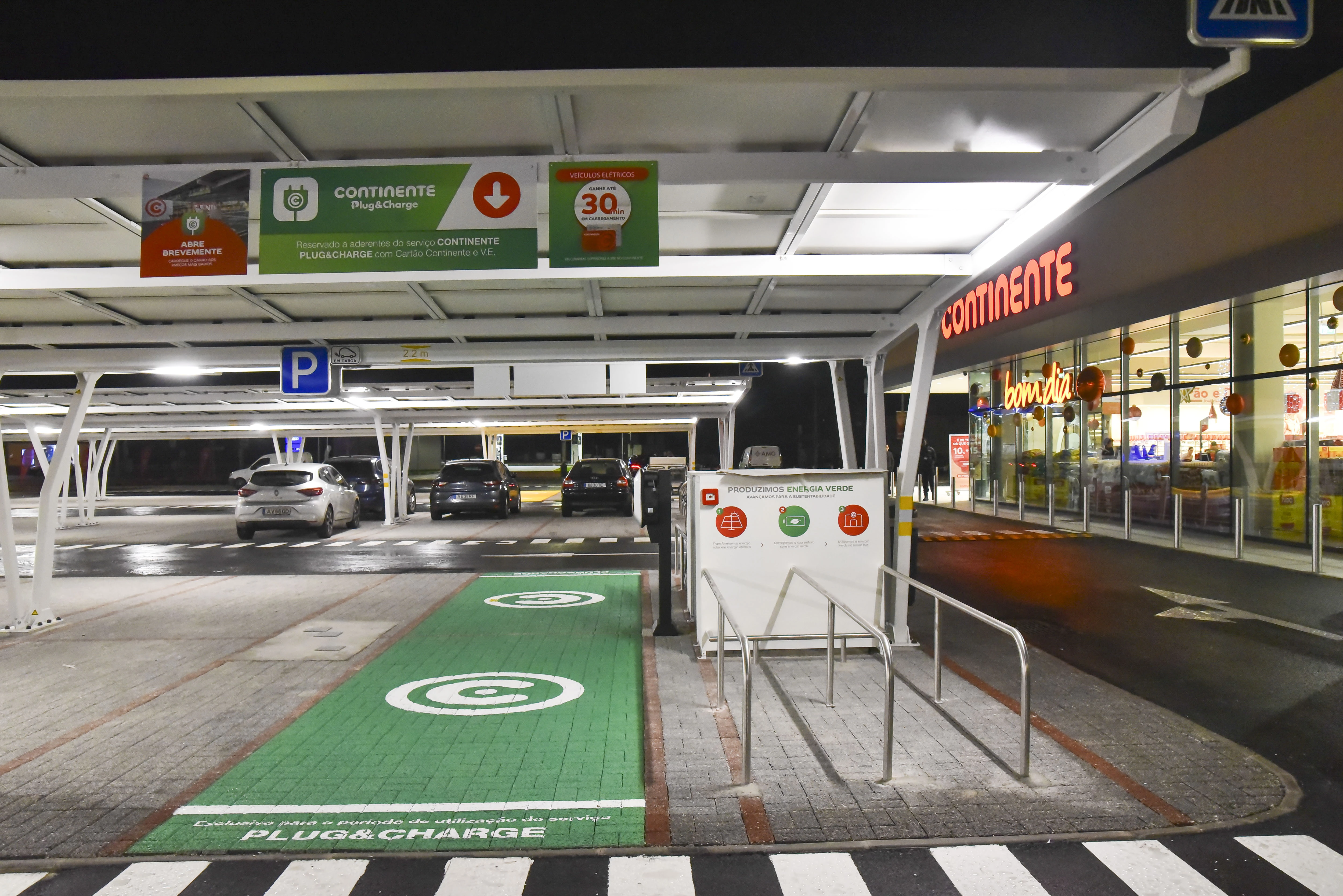 Esta loja Continente disponibiliza um parque de estacionamento a todos os seus clientes com lugares destinados a pessoas com mobilidade condicionada e lugares reservados para famílias.