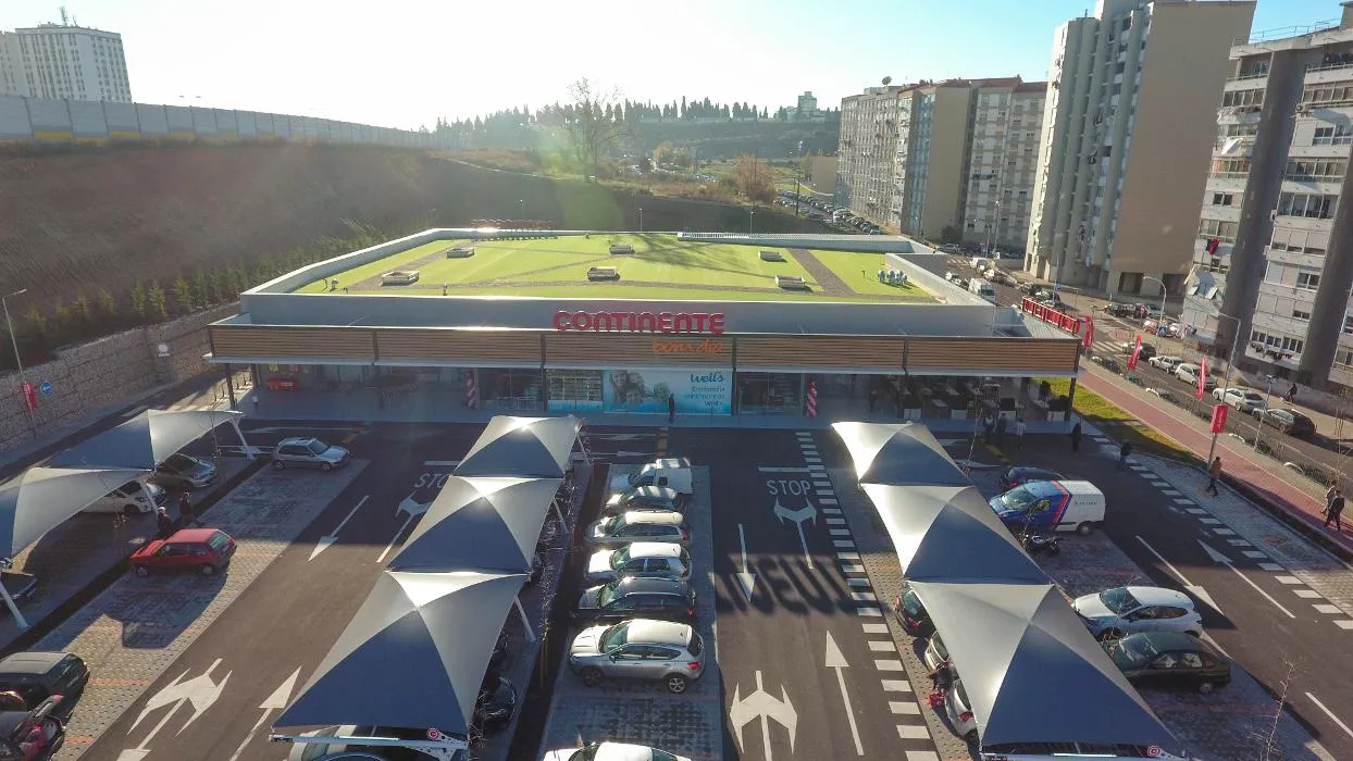 Esta loja Continente disponibiliza um parque de estacionamento a todos os seus clientes com lugares destinados a pessoas com mobilidade condicionada e lugares reservados para famílias.