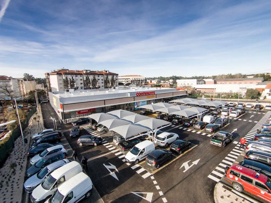 Esta loja Continente disponibiliza um parque de estacionamento a todos os seus clientes com lugares destinados a pessoas com mobilidade condicionada e lugares reservados para famílias.