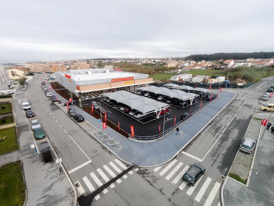 Esta loja Continente disponibiliza um parque de estacionamento a todos os seus clientes com lugares destinados a pessoas com mobilidade condicionada e lugares reservados para famílias.