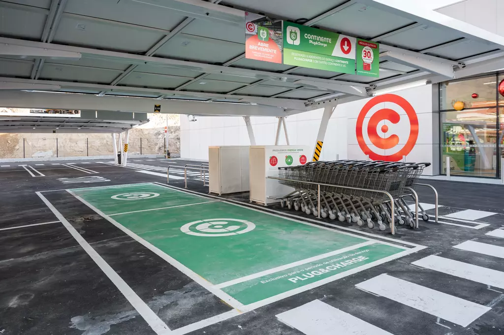 Esta loja Continente disponibiliza um parque de estacionamento a todos os seus clientes com lugares destinados a pessoas com mobilidade condicionada e lugares reservados para famílias.
