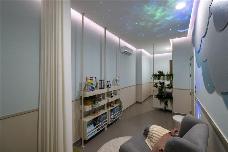 Sala de relaxamento, abafadores de som, carrinhos adaptados, assistência personalizada e planta sensorial para uma experiência de compra inclusiva.