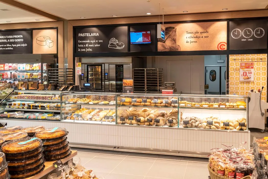 Oferta alargada de produtos saborosos de cafetaria, pastelaria, padaria e refeições ligeiras.
