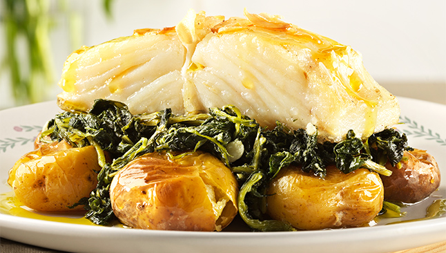 Este Bacalhau com Espinafres e Broa é delicioso, reconfortante e está pronto em poucos minutos, basta levar ao forno durante uns minutos para que a crosta fique crocante e está pronto a servir. Sem corantes ou conservantes adicionados – é como se fosse feito em sua casa. Além disso, esta refeição é embalada através de técnicas de conservação que permitem preservar a qualidade nutricional dos ingredientes.
