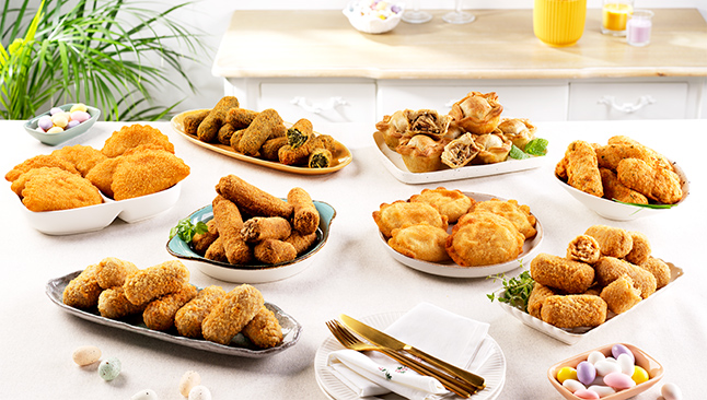 Comece por compor a sua mesa com os Croquetes de Pato, os Rissóis de Berbigão e os Croquetes de Carne. Experimente ainda os Croquetes de Alheira com Maçã, uma entrada com sabores tipicamente portugueses. Ou opte por uma opção vegetariana como os Croquetes de Espinafres.