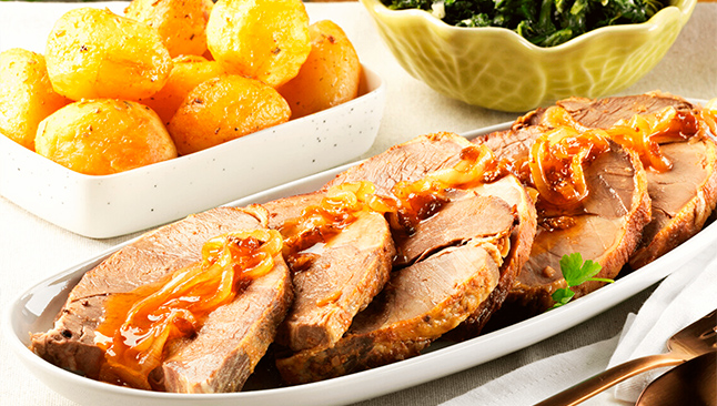 Antes de servir, regue com os sucos do assado para intensificar o sabor da carne. Finalize com alecrim fresco e acompanhe com um bom vinho tinto.
