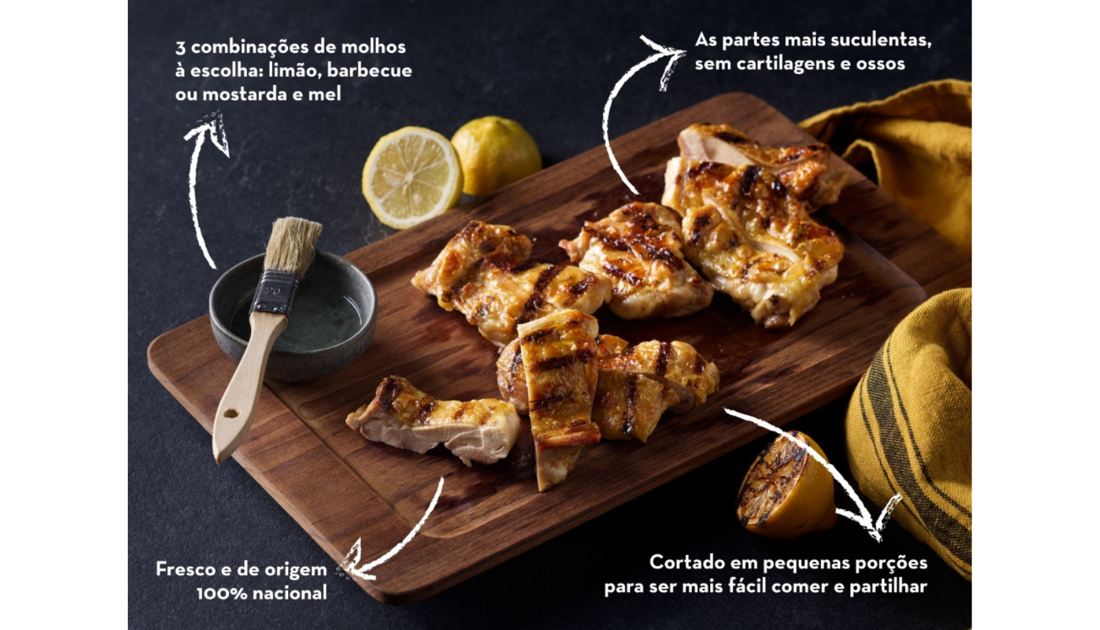 O frango chega até si cortado em pequenas porções (uma dose equivale a 240 gramas) para tornar mais fácil a degustação e a partilha. Assim, comer frango é muito mais simples, prático, saboroso e torna-se na opção perfeita para jantares de amigos, piqueniques, ou para dias mais atarefados, em que sobra pouco tempo para a cozinha.
