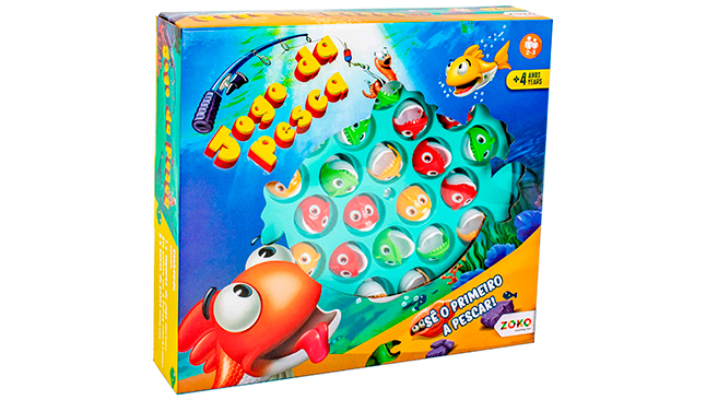 No oceano há peixes de muitas cores, mas as crianças terão que pescar apenas os da sua cor. Além de proporcionar horas de diversão, o Jogo da Pesca desenvolve a concentração e coordenação.
