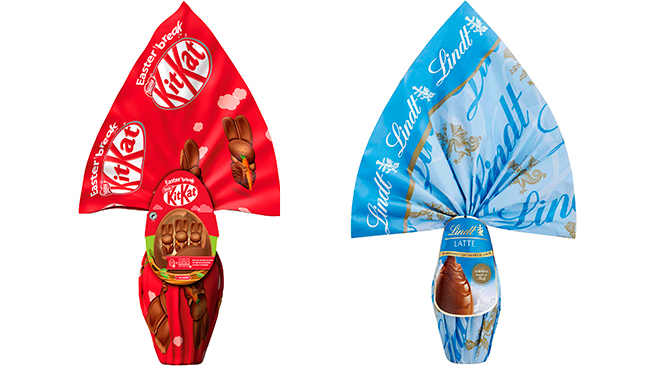 Além destes, a Lindt tem uma seleção imponente de ovos da Páscoa, com vários tipos de chocolate. A versão de chocolate de leite tem 240 gramas e está envolta num delicado embrulho azul.