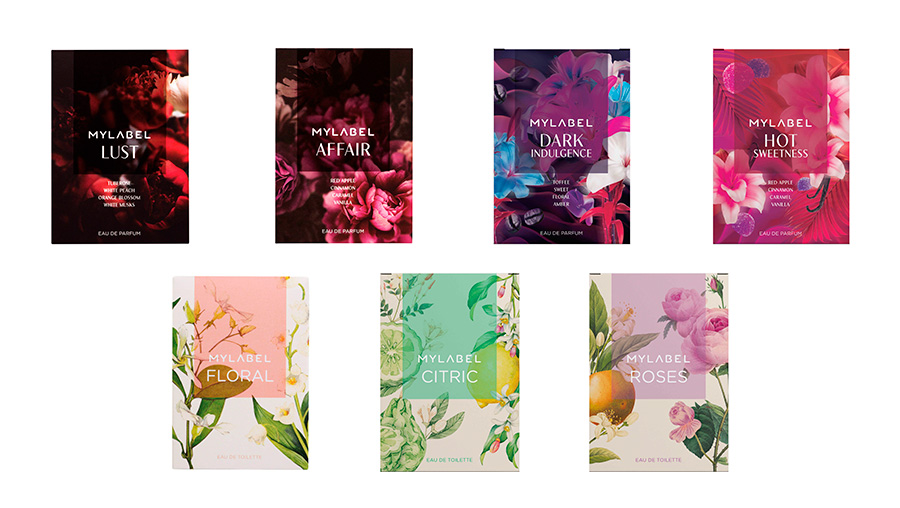 - Eau de toilette Roses Mylabel: um perfume com o aroma elegante, sedutor e romântico das rosas, perfeito para qualquer ocasião. Combina damasco suculento, frutas cítricas picantes, rosas delicadas e âmbar quente com patchouli.