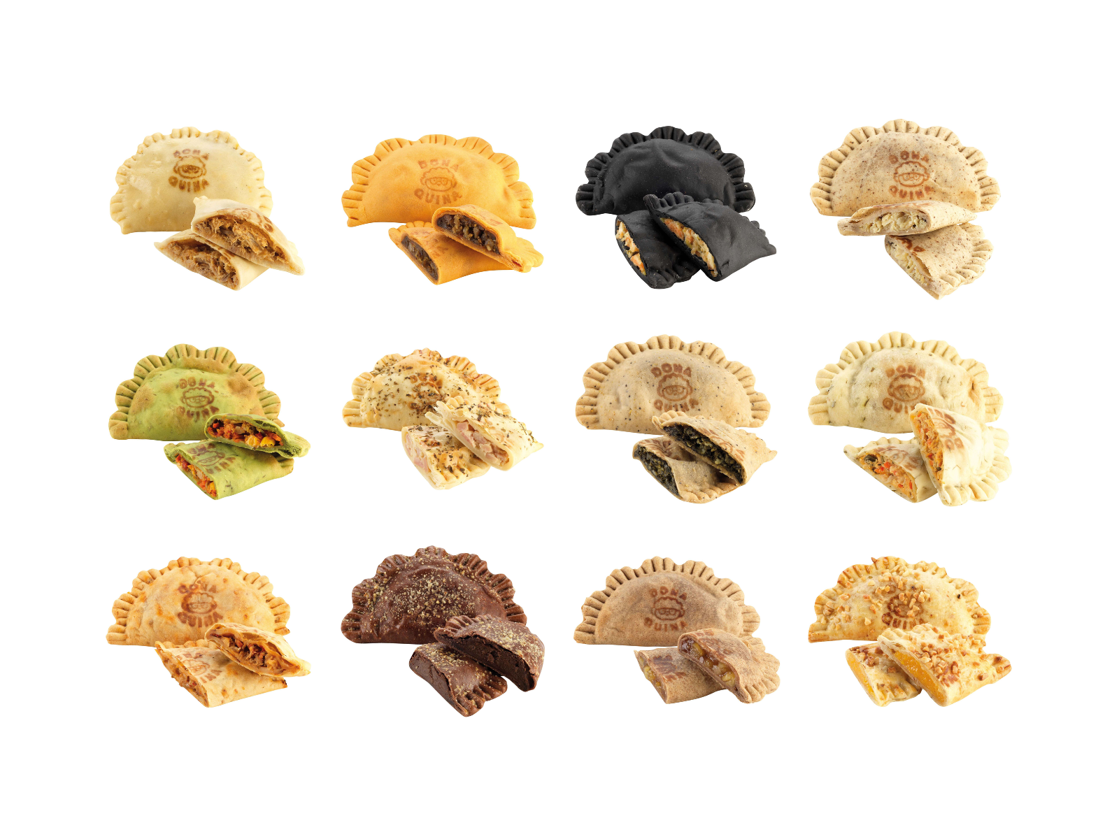 Produzidos de forma artesanal, os pastéis Dona Quina estão disponíveis em 12 recheios doces e salgados e 12 tipos de massa distintos:
