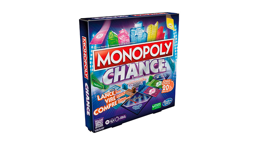 O Monopoly Chance é o tradicional jogo do Monopólio, mas numa versão rápida de 20 minutos. Em vez de deslocarem os peões pelo tabuleiro, os jogadores recebem um baralho de peão com cartas de Dinheiro, de Falência e Estratégias. A ação é constante, mantendo todos os jogadores em suspense enquanto tentam tomar decisões rápidas e inteligentes. Uma combinação emocionante de estratégia e risco que incentiva a competição saudável, estimula a mente e cria momentos inesquecíveis.