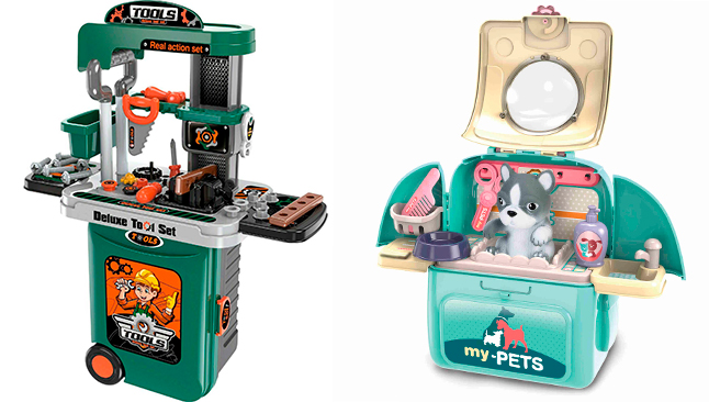 - Trolley Ferramentas Faz de Conta: para os pequenos que preferem colocar mãos à obra e auxiliar os adultos em casa, este trolley transforma-se numa bancada de trabalho completa, repleta de ferramentas para resolver qualquer problema.