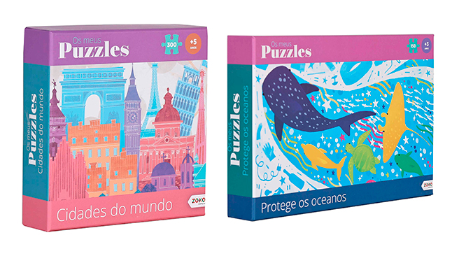 A marca Zoko tem uma ampla oferta de puzzles com diferentes tamanhos, formatos, temas e para todas as idades. Com opções de 15 a 300 peças, abordam temáticas atuais, relevantes e educativas.