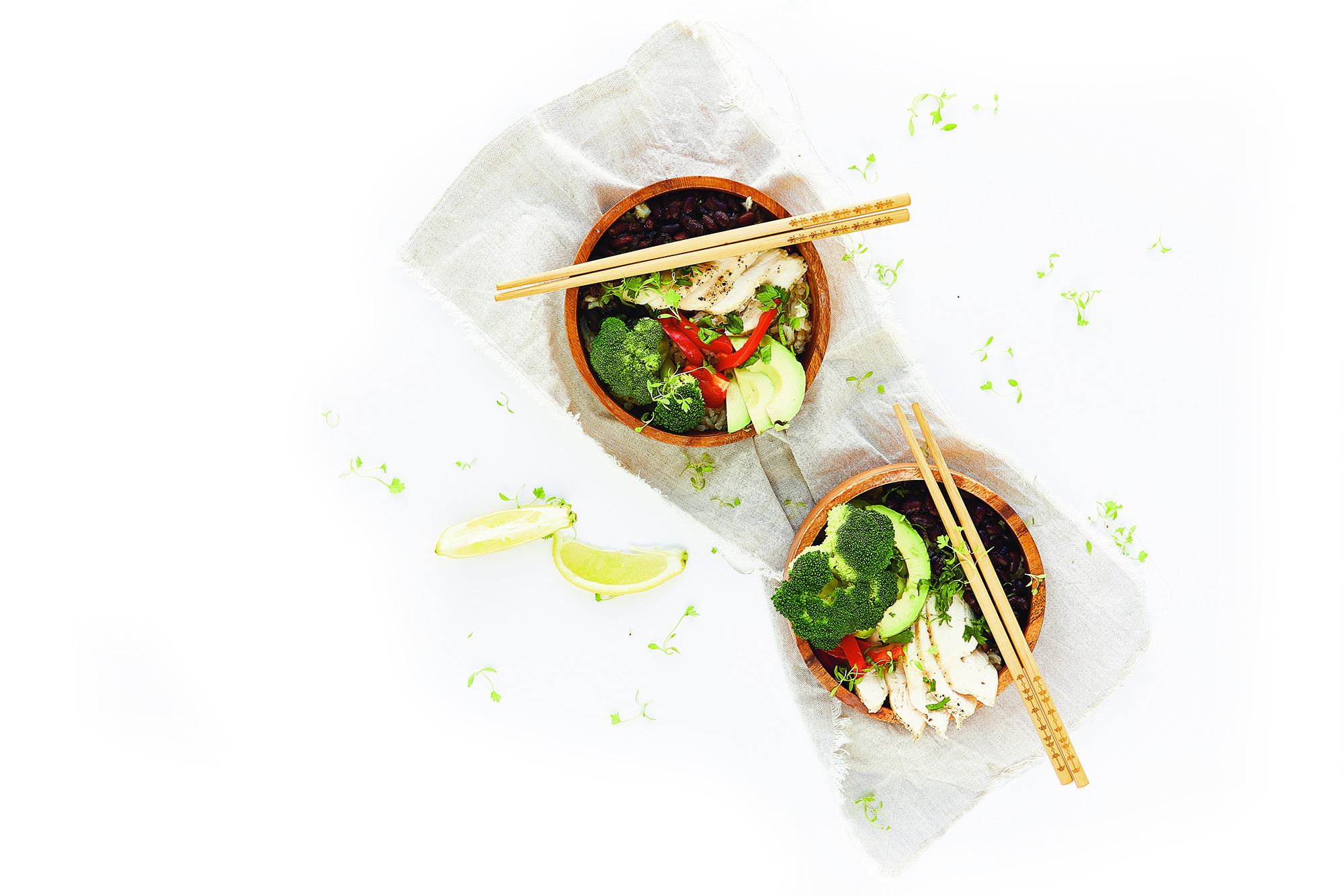 Sirva as asas de frango com o molho de iogurte e o arroz basmati. Decore com limas.