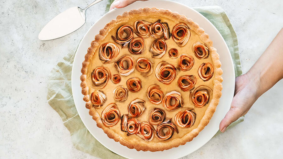 Faça o desenho de vários losangos com uma faca na massa, de modo a criar aberturas por onde depois irá escorrer a calda que vai preparar. Leve ao forno pré-aquecido a 180ºC por cerca de 20 minutos ou até a massa estar bem dourada e crocante.