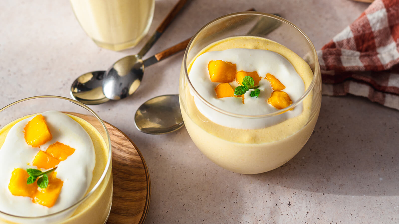 Sirva nos copos e decore com o seu batido saudável com coco ralado para dar ainda mais sabor e aroma.