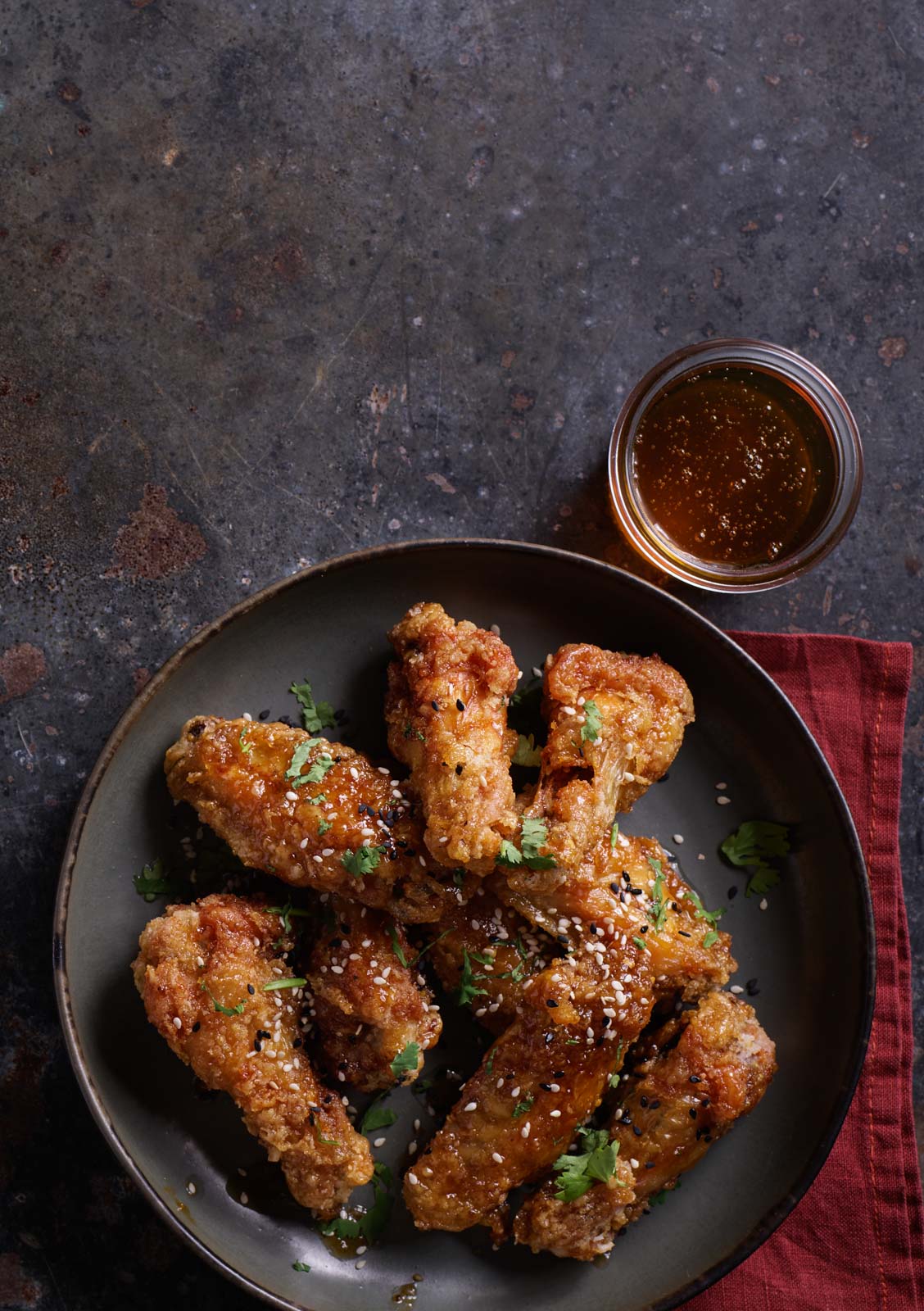 As asas estarão prontas quando estiverem de um dourado escuro, com a pele bem crocante. Sirva-as envolvidas no molho picante. Pode acompanhar com batatas fritas ou uma salada e molho de iogurte.