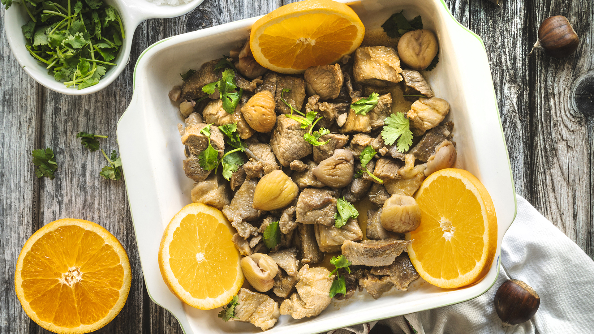 Simples de preparar, estes cogumelos estufados com castanhas são muito saborosos e compõem um prato repleto de cor.