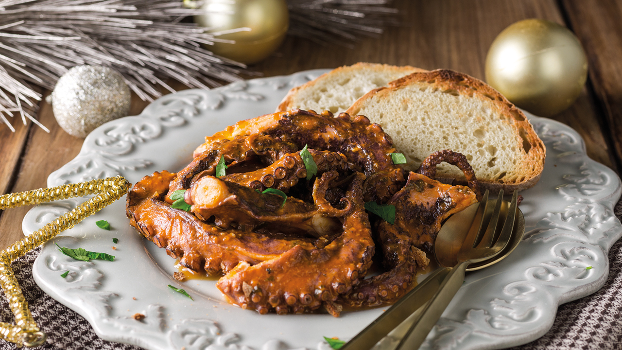 Adicione à cataplana o polvo, que deverá acabar por cozer.