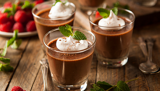 - Mousse de chocolate e menta. A combinação do chocolate com a menta resulta numa sobremesa com um sabor único e sofisticado. Uma mousse cremosa com um toque de frescura, difícil de resistir.