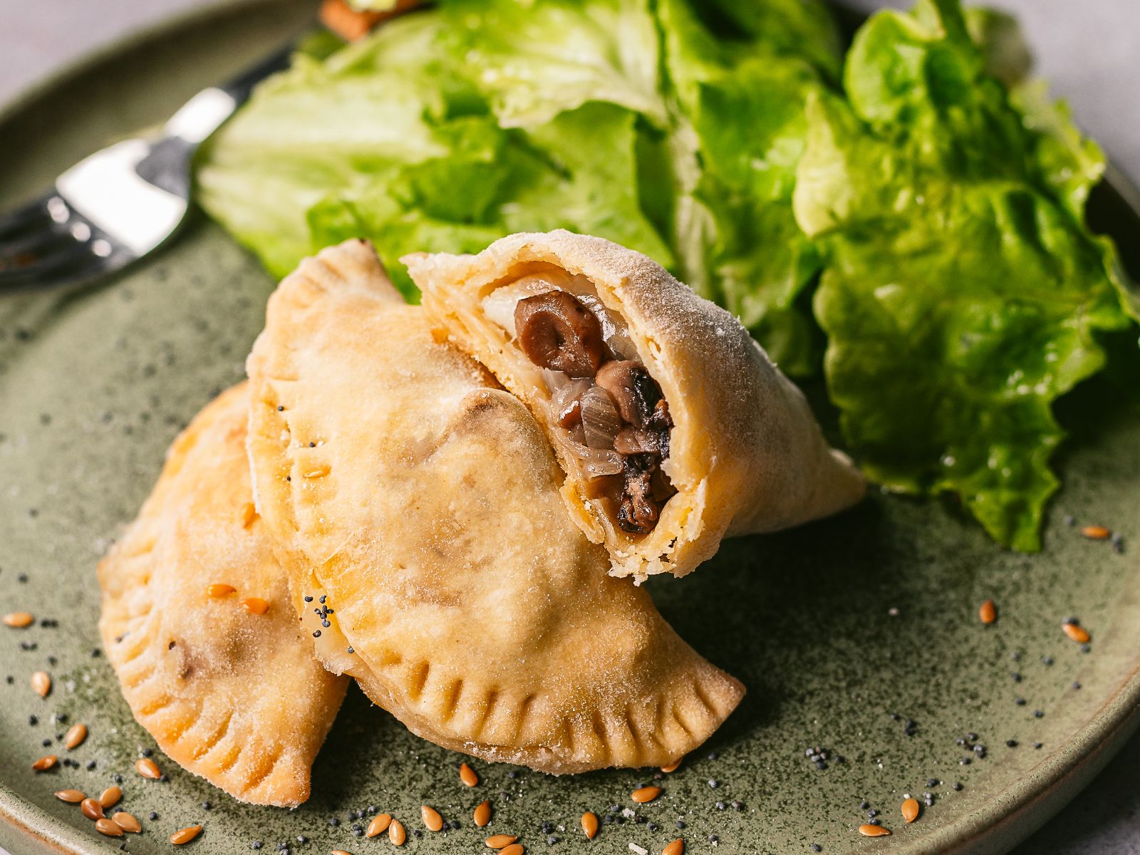 Lave bem os cogumelos, seque com cuidado para não desfazer os cogumelos. Separe os "pés" dos cogumelos do "chapéu" e pique em cubos pequenos a parte dos "pés".