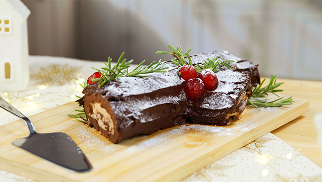 Com um sabor irresistivelmente doce e uma aparência divertida, o tronco de Natal é uma sobremesa que conquista especialmente os mais novos. Decorado com motivos natalícios, como folhas de azevinho, bagas e açúcar em pó imitando neve, esta iguaria transforma qualquer mesa de Natal num cenário mágico e inesquecível, trazendo alegria e sabor para todos.