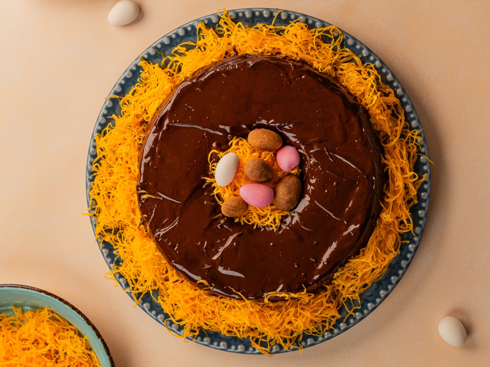 O bolo do ninho da Páscoa transporta qualquer um para uma infância saborosa. Se ainda não provou, trata-se de um bolo de baunilha com uma leve cobertura de chocolate. No meio e ao redor, os fios de ovos imitam um “ninho”. Por dentro, o destaque vai para as amêndoas coloridas para decorar e trincar. Há sobremesa de Páscoa mais divertida do que esta?