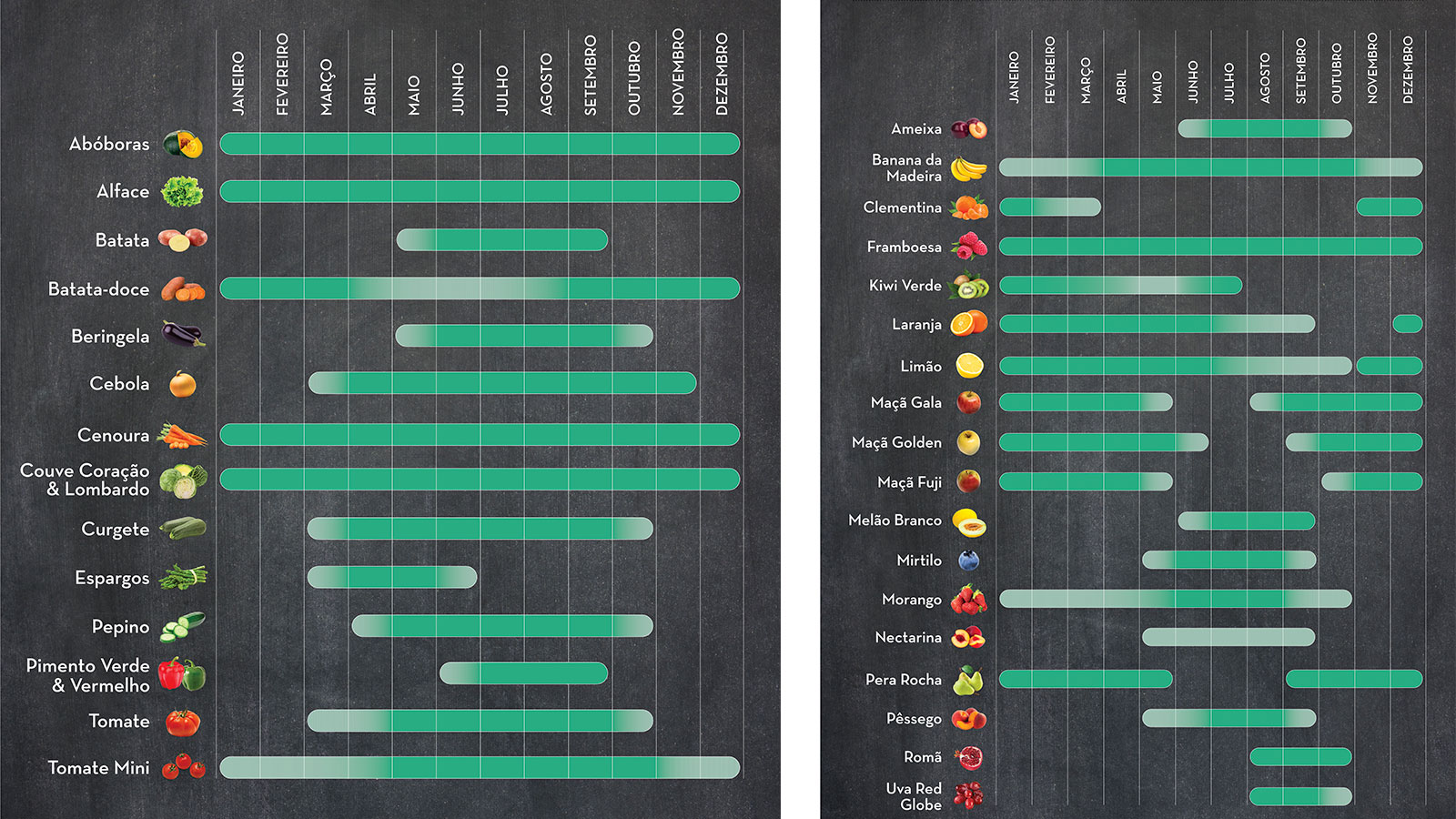 Calendário de fruta e legumes da época
