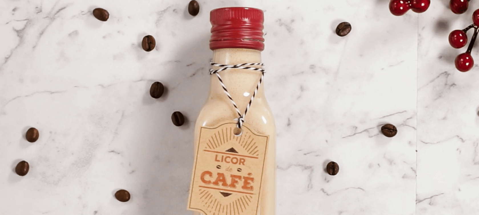 Ideias para presentes de Natal. Saiba como fazer licor de café para oferecer. Reutilize uma garrafa de vidro e personalize a etiqueta com um video ou uma dedicatória.