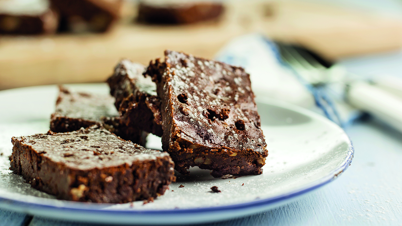Deixe o bolo arrefecer e, com uma faca de serra, divida-o em 3 “bolachas” iguais.